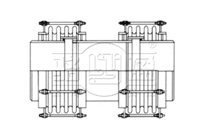 由于電廠鍋爐煤粉管道沿用填料式補償器產(chǎn)生的煤粉泄漏,以及在溫度下填料質(zhì)老約束位移,使管道系統(tǒng)膨脹不暢,影響管道系統(tǒng)的正常運行。針對這些薄弱五環(huán)節(jié)及煤粉管道工況條件、綜合煤粉管道的具體要,依據(jù)美國膨脹節(jié)制造商協(xié)會標準《EJMA》,我廠設計了二次密封,環(huán)狀球形較為支轉(zhuǎn)的煤粉管道新型三向波紋膨脹節(jié),實現(xiàn)了短安裝距大補償?shù)男乱蟆?br />設計壓力:PN≤0.5MPa